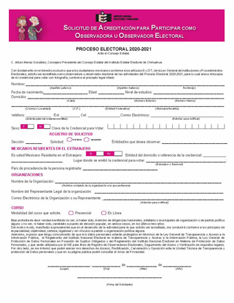 Solicitud de acreditación para participar como observadora u observador electoral.