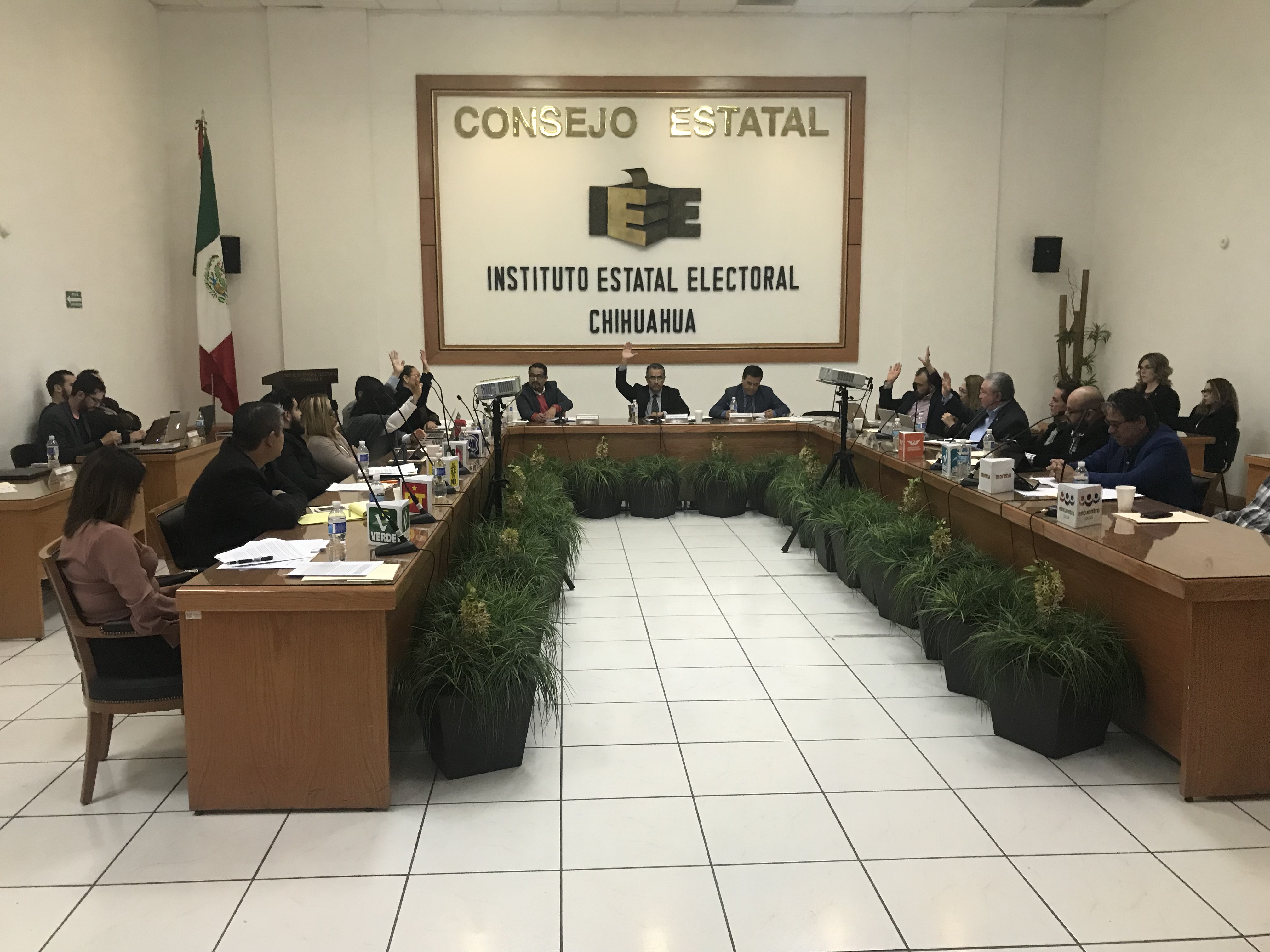 Chihuahua, Chih. - El Consejo Estatal del Instituto Estatal Electoral de Chihuahua (IEE), en su Décima Sexta Sesión Extraordinaria, aprobó los montos máximos de financiamiento privado que podrán recibir los partidos políticos, los diseños de las boletas y demás documentación electoral y los plazos para el retiro de propaganda de los aspirantes a candidatura independientes, así como de partidos políticos, precandidatos y simpatizantes, relativa a la etapa de precampaña, entre otros.