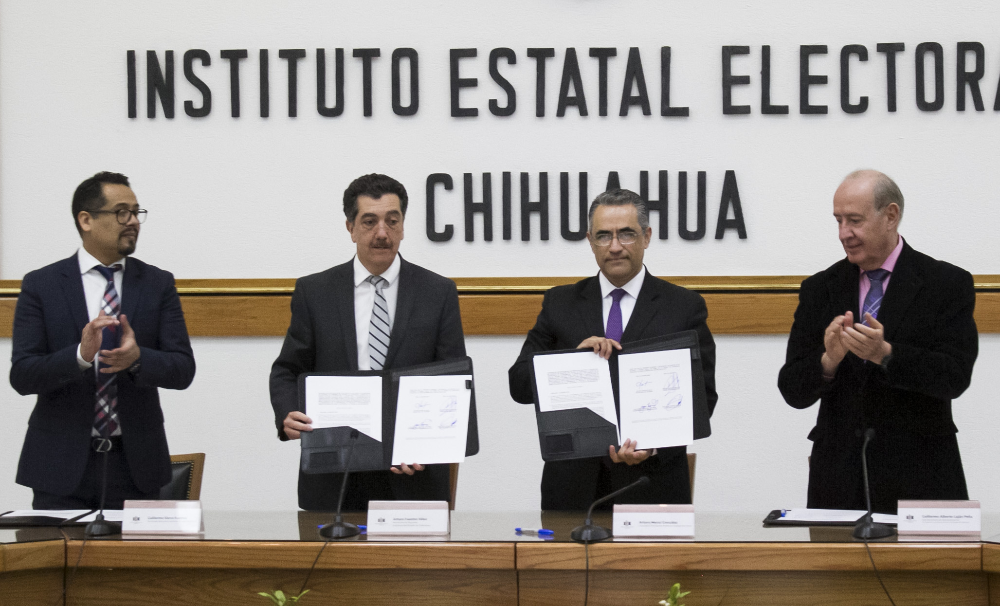 Chihuahua, Chih.- El Instituto Estatal Electoral de Chihuahua (IEE) y la Secretaría de Hacienda firmaron el convenio de coordinación, con el objetivo de establecer las bases y mecanismos de colaboración para la impresión de las boletas electorales en Talleres Gráficos.