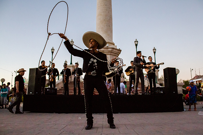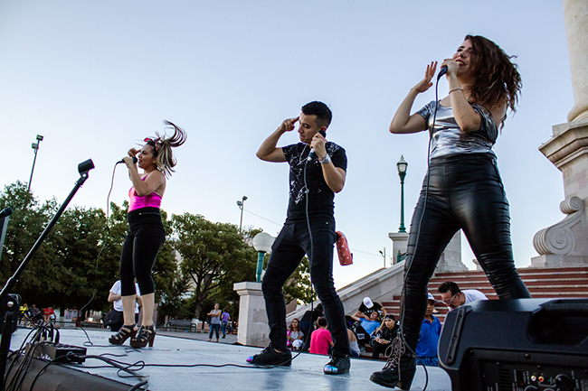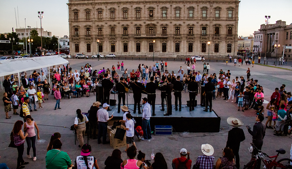 El evento comenzó con un par de percusionistas que, acompañados de malabaristas y zanqueros, recorrieron varias calles del Centro Histórico con ritmos de batucada para invitar a la Plaza del Ángel, donde a las 6:00 de la tarde ya estaba todo listo para disfrutar de una tardeada con música en vivo a cargo de artistas chihuahuenses, bailes, animación, mariachi, lotería cívica y regalos.