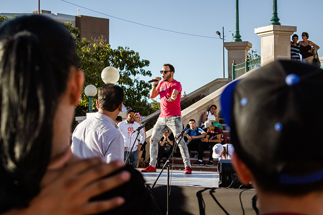 Varios artistas locales ofrecieron un espectáculo para las y los presentes. El primero en subir al escenario fue Alex Vélez Ft Extremos Crew, quien deleitó al público en compañía de un grupo de baile de ritmos urbanos.