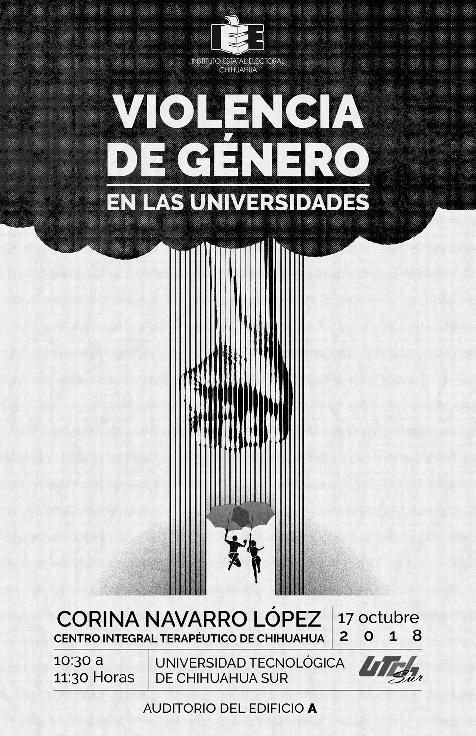Como parte de las actividades de la Dirección de Educación Cívica y Participación Ciudadana, el Instituto Estatal Electoral de Chihuahua en conjunto con la Universidad Tecnológica de Chihuahua Sur, se complace en invitar a la plática universitaria "Violencia de Género en las Universidades" que será impartida por la Psicóloga Corina Navarro López, especialista en Psicoterapia Familiar Sistémica del Centro Integral Terapéutico de Chihuahua.