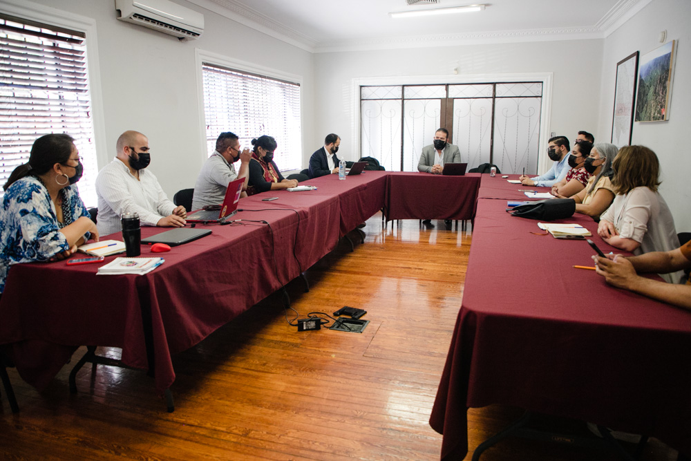 La reunión de trabajo fue inició con la bienvenida de Claudia Arlett Espino, consejera presidenta provisional del IEE, y fue dirigida por el consejero Gerardo Macías Rodríguez, presidente de la Comisión de Grupos Étnicos y Pueblos Indígenas; estuvieron presentes el consejero electoral Saúl Rodríguez Camacho, así como la titular de la Coordinación de Grupos Étnicos y Pueblos Indígenas, Georgina Gaona Pando, y el equipo de trabajo de la misma coordinación.